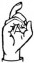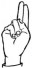 На ћирилици написано РУМЕНА БРЧАНИН састоји се из 13 слова [?]. Исписано ћириличном једноручном азбуком за глувонеме: